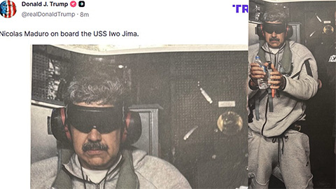Em publicação nas redes sociais, Trump exibiu a foto com Maduro algemado, descrevendo a ação como uma “missão bem-sucedida” das forças armadas dos EUA para combater a corrupção e o narcotráfico. A postagem provocou forte reação de líderes políticos e governantes de diversos países, com críticas e alertas sobre os riscos de violação da soberania nacional e do direito internacional.